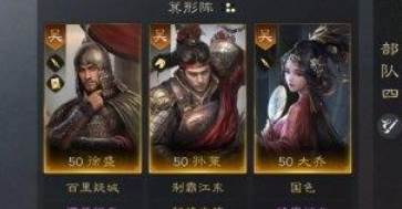 该阵容成型难度低,徐盛提供“抵御”、减伤、“嘲讽”保证部队整体生存能力,孙策兼顾自我回复和输出,配合【威名显赫】进一步放大回复的效果,而大乔主要提供持续恢复和增伤,增加部队持续作战能力。