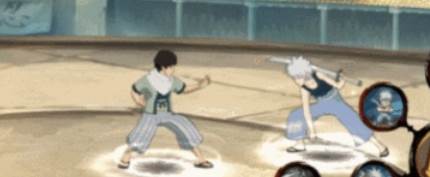 按二技能划普攻,少年扉间在身后召唤影分身,影分身留在原地,本体持武士刀向前突刺,随后影分身再朝本体方向突进挥砍。