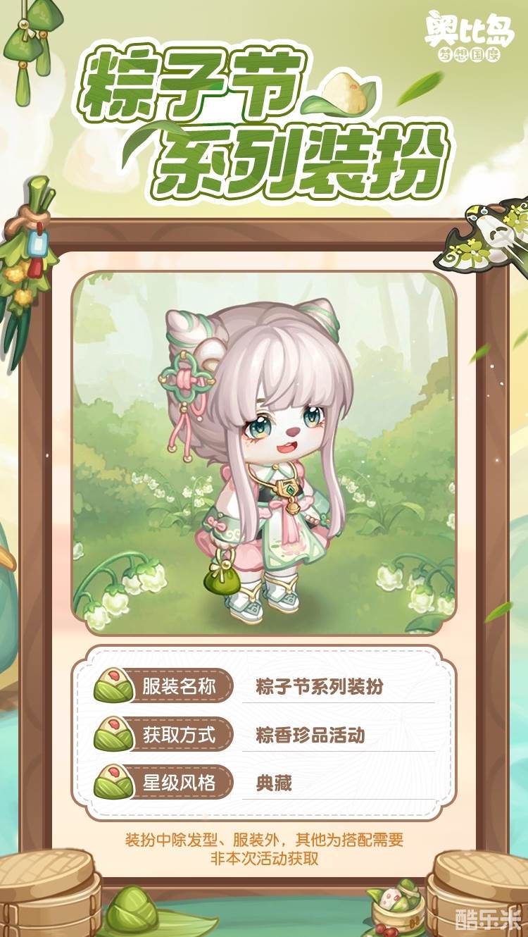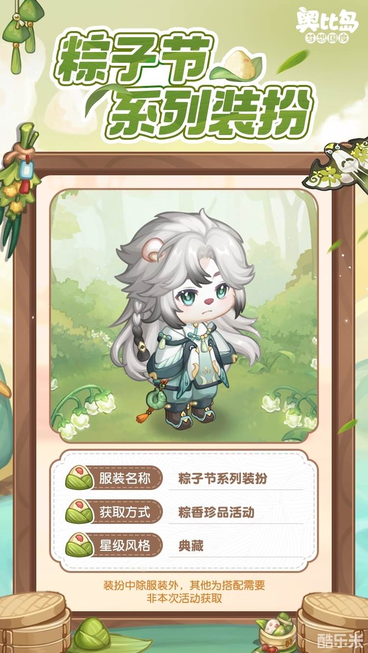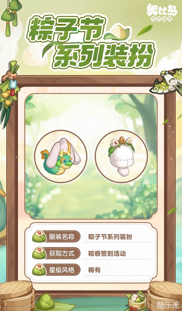 活动期间,进入【粽子节】-【粽香珍品】,可在珍品小店中获取「彩绳粽香发髻」「清雅流韵荷花裙」「纸鸢逐燕踏青衫」三款粽子节限定主题装扮,小奥比们不要错过哦。