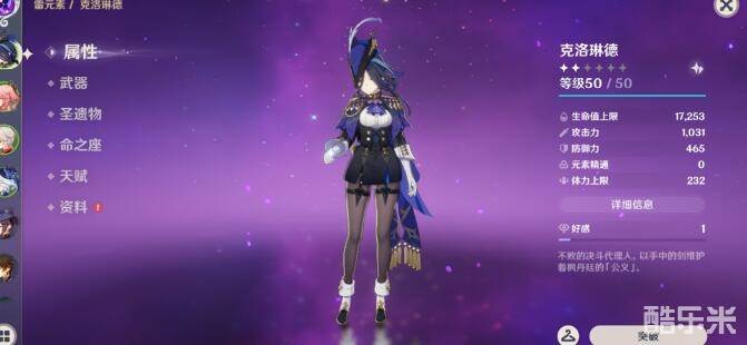 《原神》克洛琳德叠攻击和生命对比建议