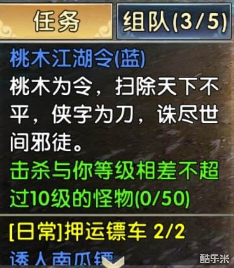 接取任务后,根据不同等级的江湖令,只需击杀对应数量的野怪即可,但一定要记住野怪的等级与你的等级相差不能超过10级,不然不计入击杀数量中。