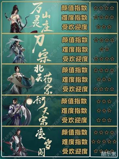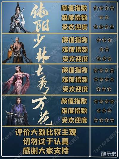 3、上手难度!新手可以优先考虑选择【远程】输出类型门派。如果你有一些mmo基础,对于操作相对自信的可以选择【近战】输出类型门派。【坦克类型】和【治疗类型】的门派需要更高要求的手法和意识,尤其是PVE,坦克和治疗的作用至关重要。所以要求会相对较高一些。