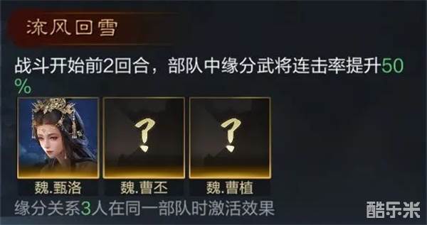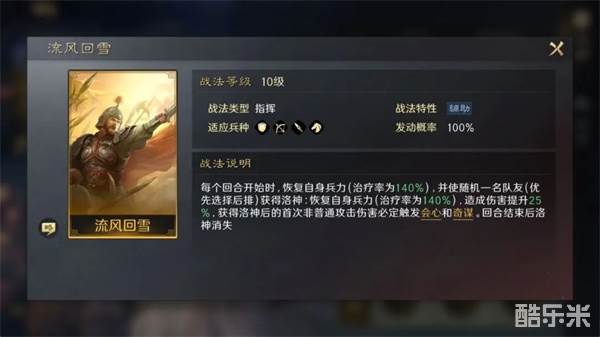 【流风回雪】指挥战法,可以给友军武将提供稳定治疗和输出。