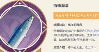 衔珠海皇被不少玩家称作“咸鱼大剑”,迪卢克拿这把武器开大的时候,真是名副其实的“蒙德烤鱼”。这把武器观赏性高,但是强度和泛用性比较一般,属于大剑角色基本都能用,但都不怎么好用的那种,因此一般只推荐新手在过渡使用。