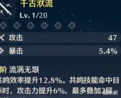 2、该武器的副词条能够提升佩戴者的共鸣效率,续航能力比较强。