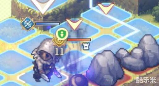 2、如下图所示,职业模仿这个光系小伙伴,然后到后面普攻1号,到4号位置,闪击2号,到5号位置,普攻 3号,然后移动到放大镜位置处待机
