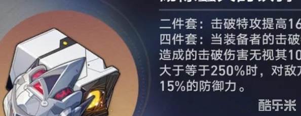 具体来说,当装备者的击破特攻大于等于150%时,对敌方目标造成的击破伤害将无视其10%的防御力;而当击破特攻达到250%及以上时,对敌方目标造成的超击破伤害将额外无视其15%的防御力。这样的属性加成,无疑将使装备者在战斗中更具优势。