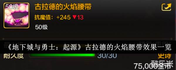 地下城与勇士起源古拉德的火焰腰带效果怎么样?这个装备的稀有性很高,所以拥有的玩家目前还是比较少的,接下来酷乐米小编就将古拉德的火焰腰带的属性介绍给大家,感兴趣的小伙伴可以来了解一下。