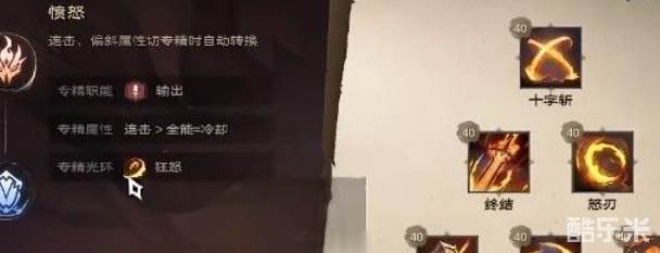 3、怒刃。使用怒意值,将狂怒之刃变为剑刃对敌人打出物理伤害。