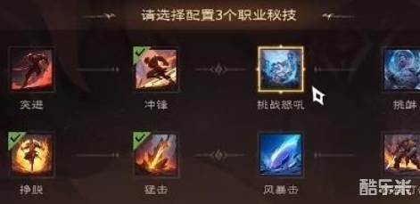 在秘技的选择上,输出流派选择:冲锋-胜利欲望-打断/突进;防御流派选择:冲锋-嘲讽-群嘲/打断。在宝石天赋上,输出流属性优先级:力量>连击>全能=冷却;防御流属性优先级:耐力>偏斜>全能=冷却。赋能优先级同宝石(PVP场景与少数天赋需要共鸣属性)。