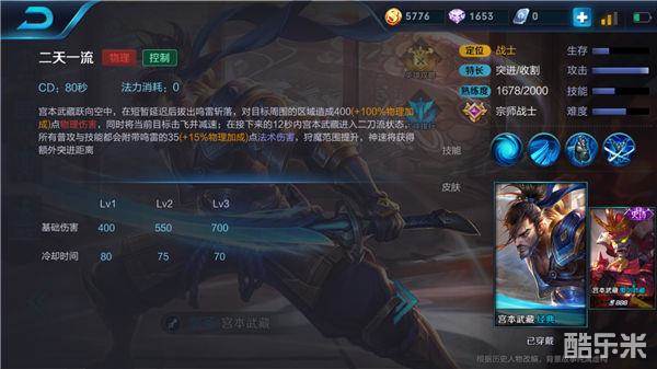 解析:使用技能后可以强化普攻,造成额外的伤害;另外该强化普攻命中单位后可以减少所有技能的冷却时间。此技能非常实用,既能保证宫本武藏的持续输出能力,又能弥补他大招初始冷却时间过长的弊端。