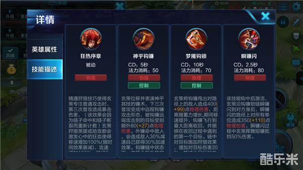 技能加点推荐:主升一技能神乎钩镰,副升二技能梦魇钩锁,优先升级大招瞬镰闪。