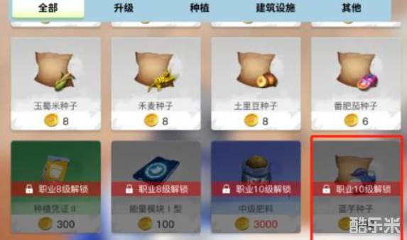 首先蓝芋种子在创造吧我们的星球游戏中的购买途径只有一种,那就是在职业商店中进行购买,玩家们需要达到职业十级后才能购买蓝芋种子,它的价格也比较高昂,需要花费202金币。但和高价格对应的,是蓝芋种子在游戏中的多种用途。想要解锁额外的种子,玩家们必须先要提升李太和的等级,因为如果李太和的等级达不到要求,那么即使玩家们通过野外农场购买到了农作物,也无法从李太和处解锁这些材料。