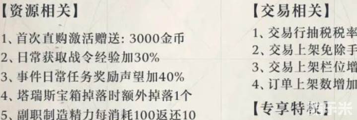 战令是塔瑞斯世界中的一种性价比较高的氪金方式。玩家购买战令后,可以通过完成战令任务获得大量金币、材料、头像框等实用道具。此外,战令还提供了赛季专属时装和坐骑等稀有奖励。对于追求更高游戏体验和个性化需求的玩家来说,购买战令是一个不错的选择。