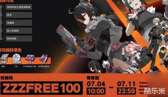兑换码有效期:7.4 10:00~7.11 23:59。