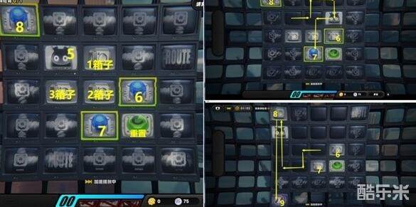 把【1箱子】推到6区域,【2箱子】推到7区域,【3箱子】推到8区域,去9区域,去10区域拿了宝箱去11区;