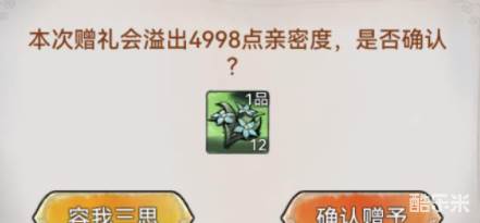 b.如果送的是杂物,那么蓝色品质+200好感度/个,紫色品质+600好感度/个,如果是对方喜爱的话好感度翻倍