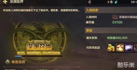 等我们48级了,做好在天界发现的深渊之门就可以解锁了,委托里面选择深渊临界,过关还可以获取装备啊经验这种的,进去以后按照任务的要求去过关刷怪就可以了,能够得到史诗装备制作材料还有深渊精粹。