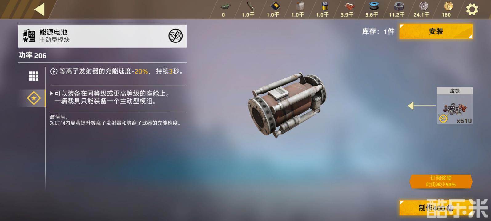 主动模块的效果能够帮助各位工程师取得战术优势,比如隐身、瞬时高额加速、提升射速、干扰视线等等……而如下图所示的“能源电池”就是在游戏开始时选择双足战车作为初始战车时赠送的主动模块,这一模块激活后能够提升等离子发射器的充能速度。