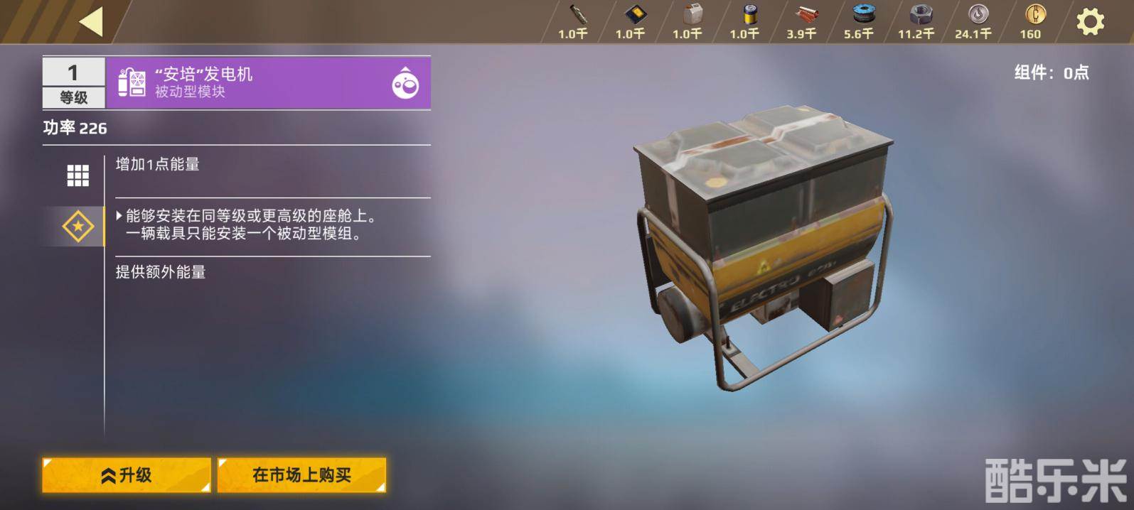 被动模块的加成相比主动模块较低,但它们有一个好处就是只要未被拆毁就会持续生效。如下图所示的“安培”发电机便是现在唯一一款发电机,而它的效果也非常惊人,可以直接增加1点能量,让你能够携带更多的武器。