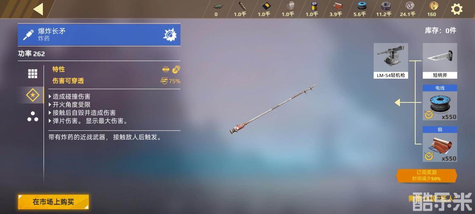 上图所示的是各位工程师获得的首个稀有品质“爆炸长矛”,而这类武器的作战风格则显得非常的简单、粗暴且狂野:通常来讲在设计战车时就会携带隐形模块,看见敌人了就启用隐形模块,然后飙车冲上去冲撞引爆长矛。