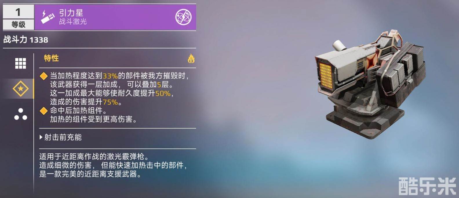 《创世战车》激光武器都具备一定程度的加热能力,这使得它们即使无法作为主战武器,也能作为辅助武器在战场上发挥作用。“引力星”与其他能量武器截然不同,它虽具备霰弹枪的特性,但伤害输出水平却与霰弹枪大相径庭。下面酷乐米小编给大家带来的《创世战车》引力星激光武器介绍,感兴趣的小伙伴们一起来看看吧。