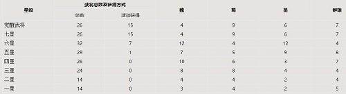 4个派系,均为三国时期风云人物,主公耳熟能详。根据星级分布如下: