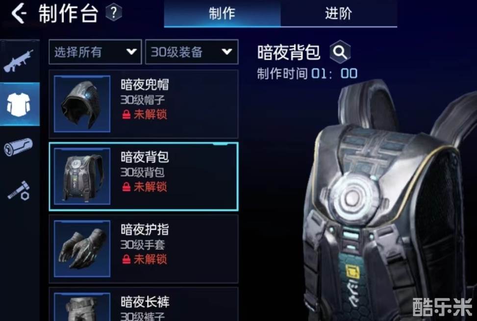 玩家在进行暗夜背包的制作需要的材料有16个电子元件,3块陶瓷,2份纤维布,5个几丁质外壳和13个二极管,除了得到基础的生命和属性加成,还可以提高背包的容量。