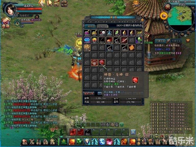 在钓鱼的过程中,玩家可随机获得龙虾、鲤鱼、小龙人娃娃等物品,使用物品就有机会获得神兽龙神以及龙神套装等稀有物品,同时还能获得高级鱼饵、大量的人物经验。使用小龙人娃娃有几率获得龙神蛋兑换券,即使没有开出神兽,也可使用龙神蛋兑换券在小龙女处兑换龙神蛋!