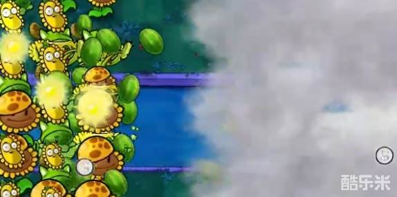 5、最后在最里侧种植两列西瓜猫蒲,在水池中种植两个黄油忧郁菇即可过关。