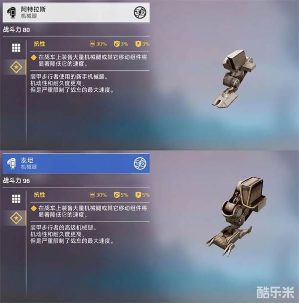 今天给大家带来了《创世战车》阿特拉斯和泰坦机械腿介绍,“阿特拉斯”与“泰坦”是入门级机械腿,当各位工程师初次进入游戏时,他们可以选择战车“秒差距”来获取普通(白色)品质的机械腿“阿特拉斯”。下面和酷乐米小编一起来看看吧