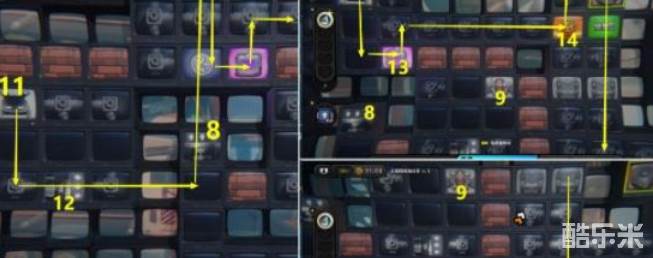 3、接着去6和7区域,接着去从8区域进入9区域后按1次F键,然后经过10和8区域进入11区域;