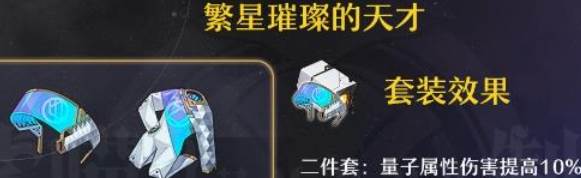 这个套装提供量子增伤、无视防御,和需要敌人有量子弱点才能获得的额外无视防御。只要敌人有量子弱点就可以吃满效果,但若是没有就会损失一部分增益。好在一般会让翡翠在量子环境中上场,在队伍中减防没有溢出时也是一个不错的泛用选择。