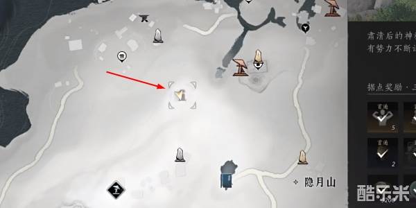 1.玩家在接取到该任务后打开地图来到隐月山右下角的区域,具体位置如下图所示。