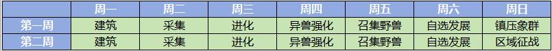 小tips:提前卡建筑升级时间,提前点升级,建筑完成时间卡到周一10点后或者13点后,配合兽群,这样可以完成两个任务。