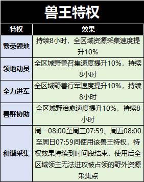 6、兽王在位期间,野兽的攻击和防御可以获得50%提升,部队行军速度可以获得100%提升。