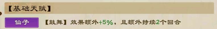 第一条天赋,鼓舞,效果+5%,关键是额外持续2回合,鼓舞技能是战斗中触发,所以计算方式是按面板攻击乘以系数,也就是说,鼓舞不被驱散的情况下,能持续到近二。这游戏里,乾坤,霸体都是在远战生效,而甄姬的鼓舞近一还在,很好得保证了自己在近一的时候提供足够的防御,减少唤雷和无双的伤害。