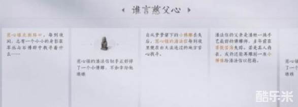 燕云十六声谁言慈父心这个任务怎么做呢?很多小伙伴都很感兴趣,目前为止还不知道具体的流程是什么,下面和酷乐米小编一起来看看吧