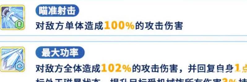 对敌方全体造成102%的攻击伤害,并回复自身1点能量,标处于磁暴状态,提升目标受机械族所有伤害3%持续2回合,上限2层