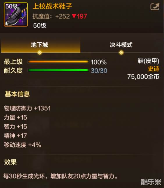 《地下城与勇士》上校战术鞋子装备图鉴
