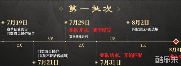 1、第一批次服务器的赛季结算流程,第一批的玩家会在这个29日进行结算,然后在8月3日进入s2赛季。