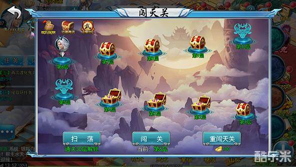 闯天关是一个非常有趣的玩法,一共有50个天关,天关每天都会自动重置一次,每次经过战斗通过天关后,就可以获得星魂、圣兽之心、符文石以及符文作为奖励。同时也是星魂最重要产出途径哦。每次成功闯过上一关后,就可以就可以开始下一关的闯关。另外告诉大家一个小技巧哦!当通关30关以后,更可以开启扫荡功能哦!