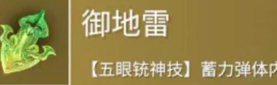 3、御地雷会蓄力弹体内延爆的五眼铳神技,会对敌人造成内伤,攻击增加百分之四。