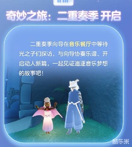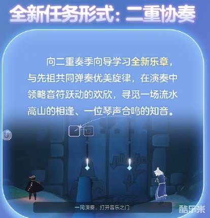 光遇二重奏怎么玩?在这个音乐与冒险交织的季节里,你将如何与音乐家与舞者先祖共舞,解锁乐器,学习乐章,演奏出动人的旋律?是沉浸在音符岛屿的梦幻场景中,还是挑战多样化的任务,成为舞台上最耀眼的光之子?下面和酷乐米小编一起来看看吧