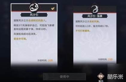 释放3个风弹保护自己,可抵挡飞索硬直和远程武器子弹,持续10秒。