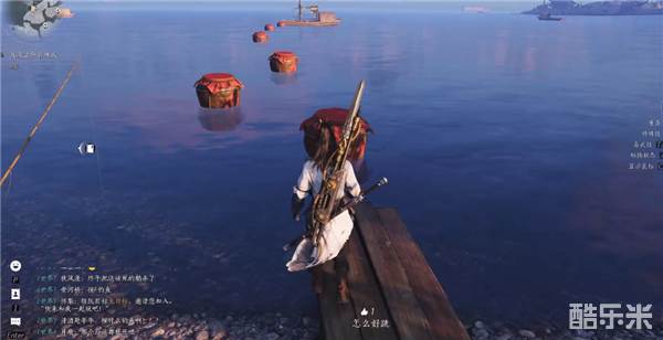 3、体验完之后我们要学习,这个湖里就会升起一列酒坛子,我们需要踩着酒坛子到最远处的船上。