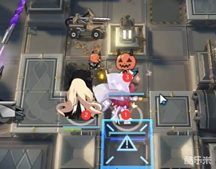 如图所示部署桃金娘(技能好了就开),随后部署夜莺(向上)以及鸟笼(吸引第一波炮火)。