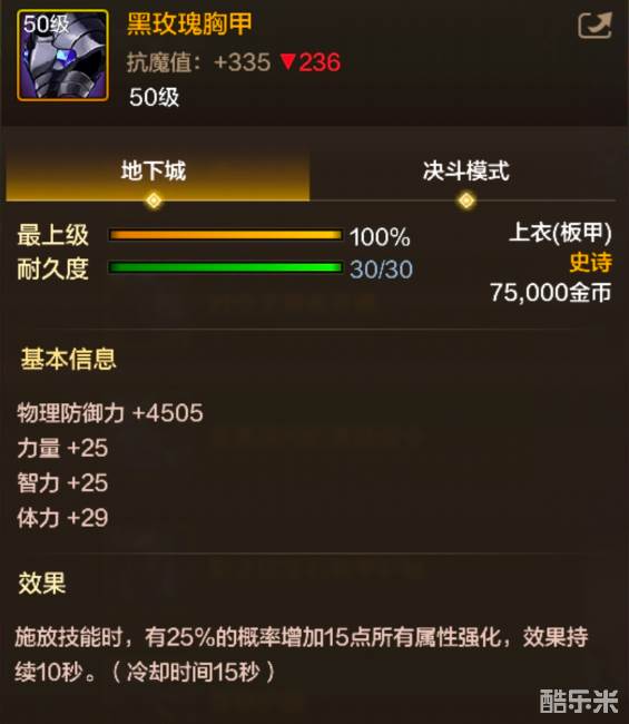 黑玫瑰胸甲是《地下城与勇士:起源》中的50级上衣位置的史诗板甲散件,能够在释放技能时强化自身属性,能可以通过深渊掉落和团队模式BOSS获取,那么接下来就让我们一起了解一下黑玫瑰胸甲吧。