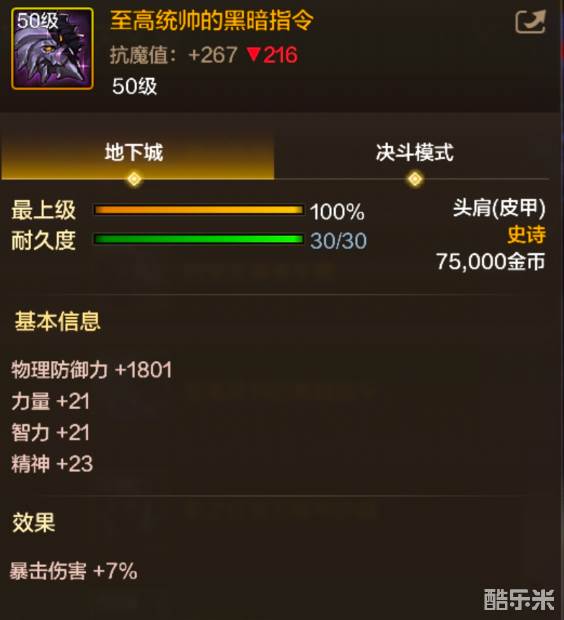 《地下城与勇士》至高统帅黑暗指令装备图鉴