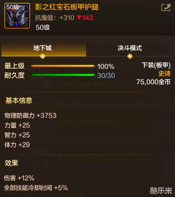 《地下城与勇士》影之红宝石板甲护腿装备图鉴